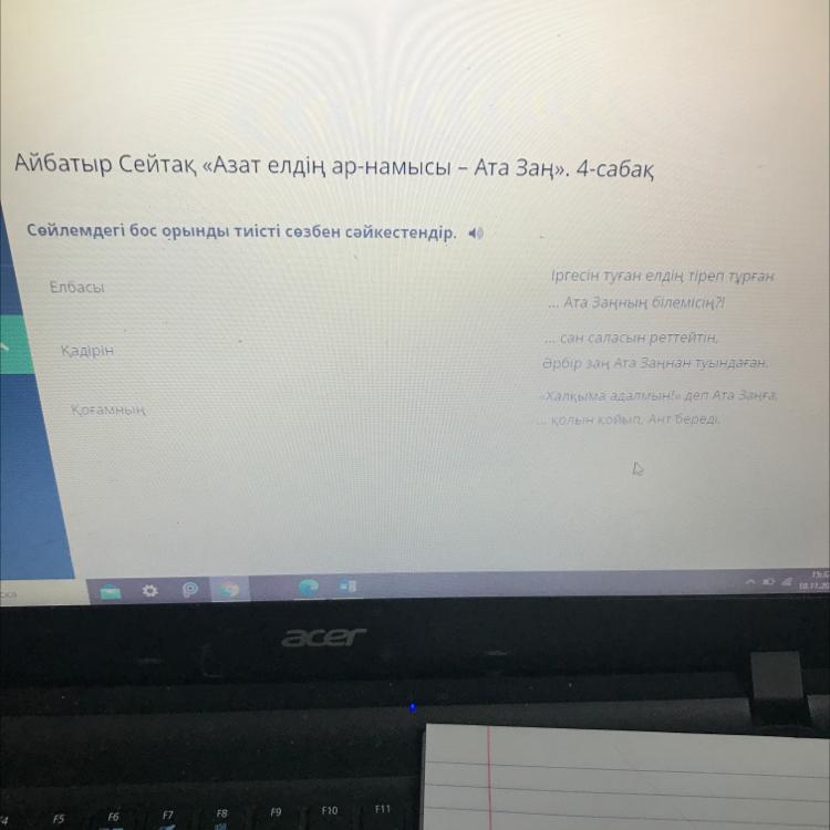 Сөйлемдегі бос орынды тиісті сөзбен сәйкестендір. 4)