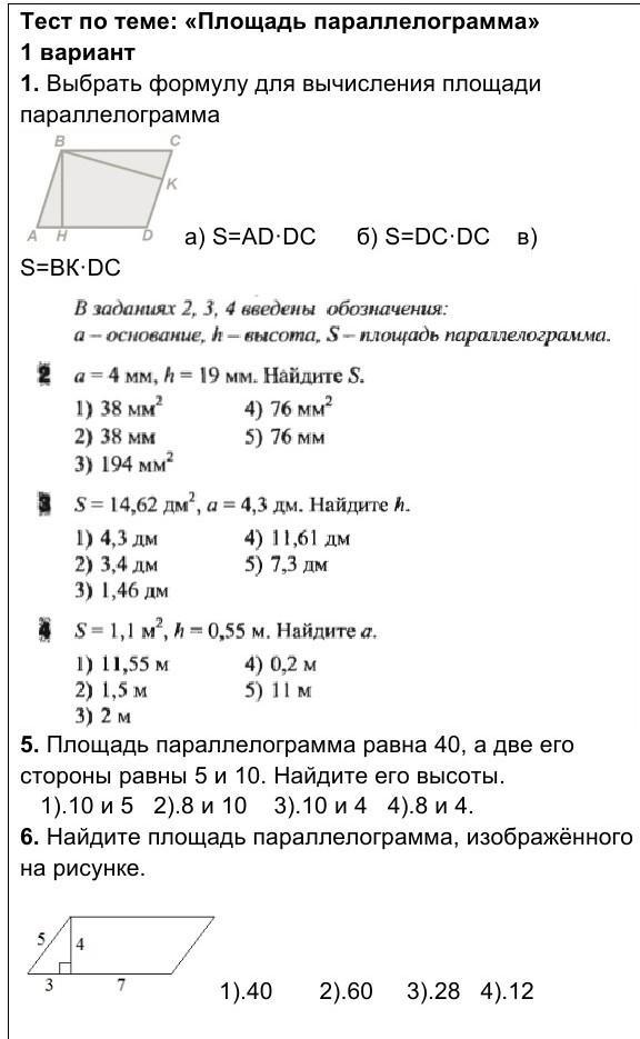 5) h1=S/a=40/5=8; h2=40/10=4.