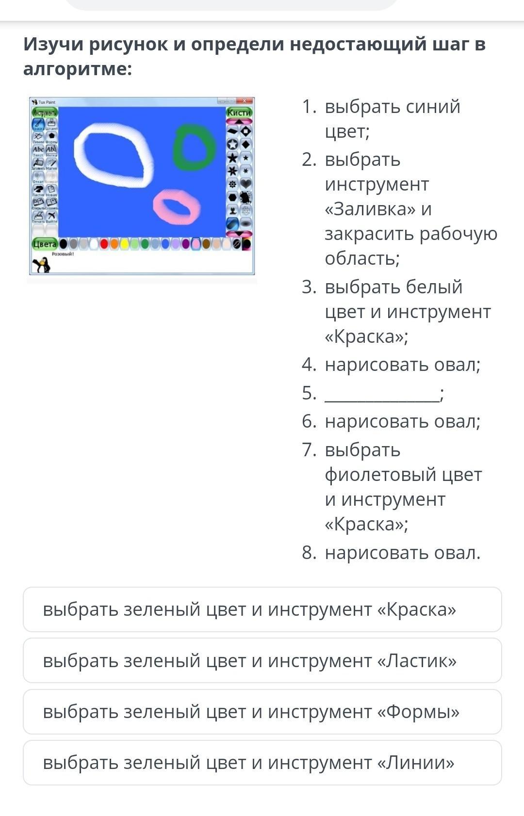 Изучи рисунок и определи недостающий шаг в алгоритме: