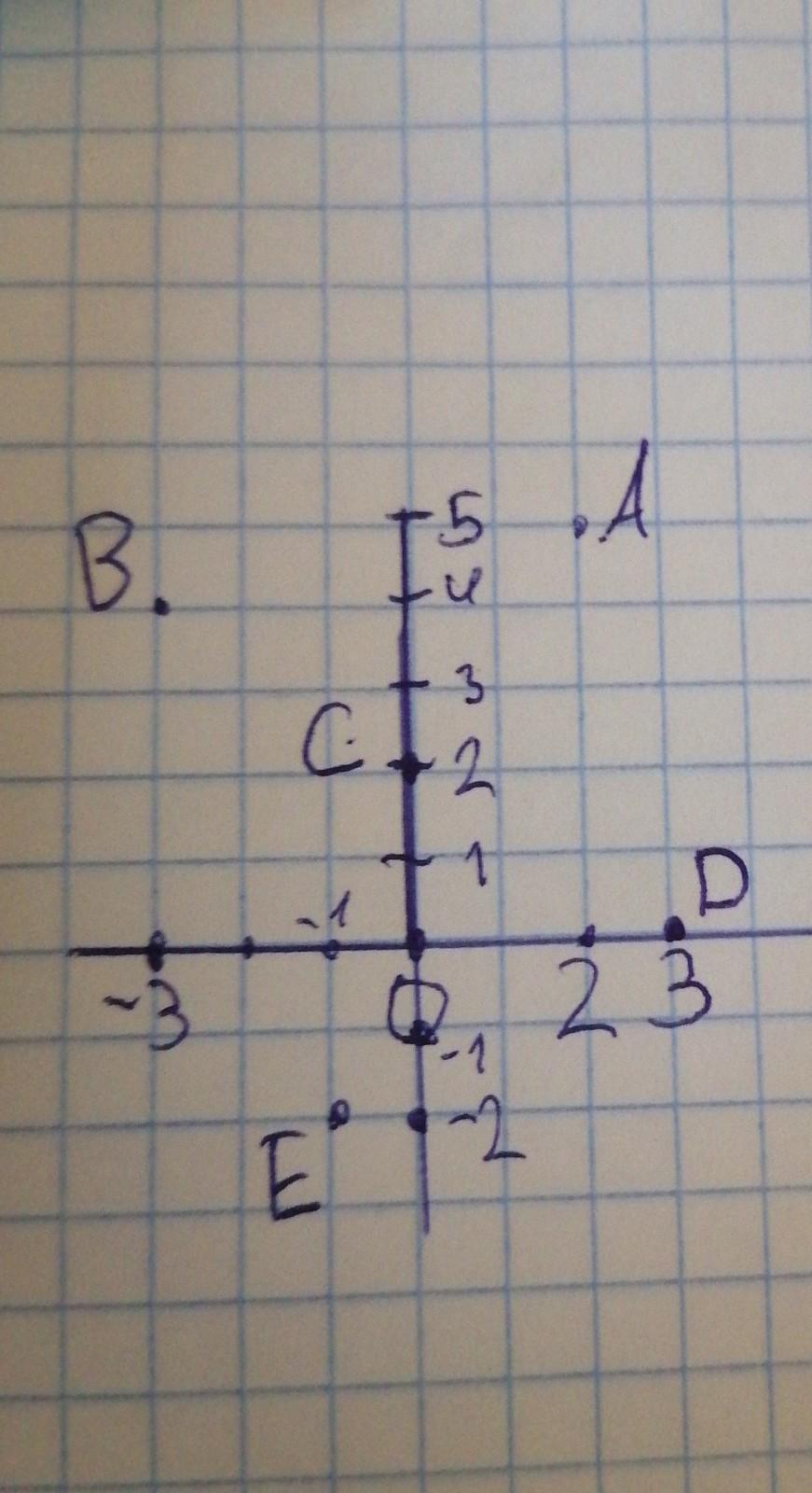 А 2 клетки в право 5 наверх ставишь точку, В 3 клетки влево 4 вверх ставишь точку С 2 наверх ставишь точку D 3 вправо ставишь точку Е 1 влево 2 вниз ставишь точку