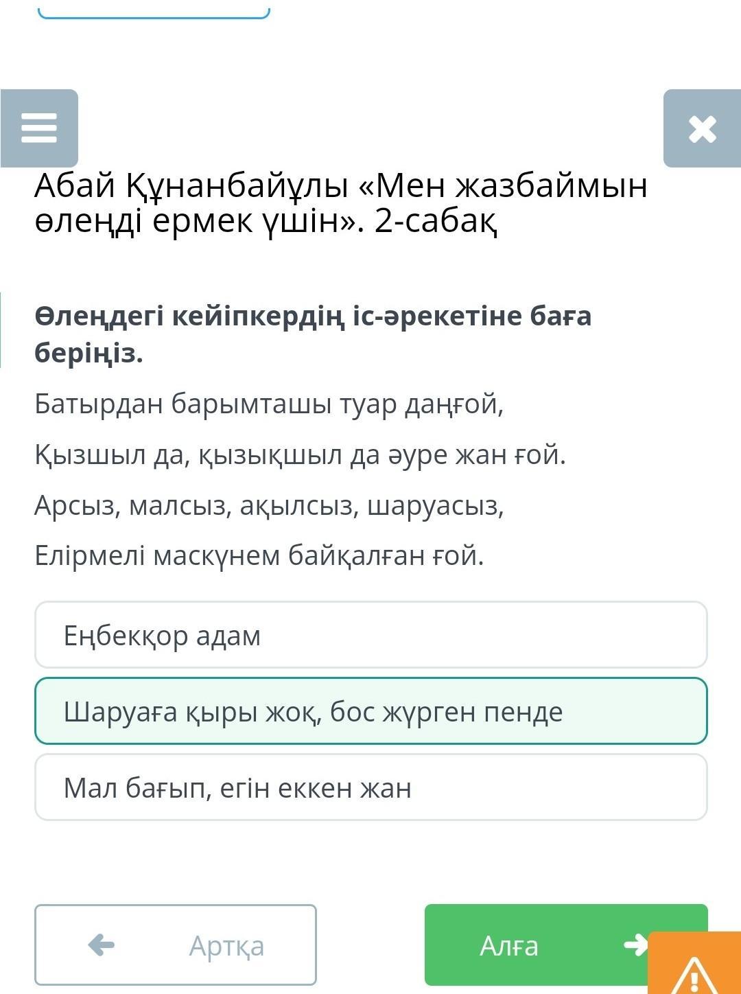 Өлеңдегі кейіпкердің іс-әрекетіне баға беріңіз.