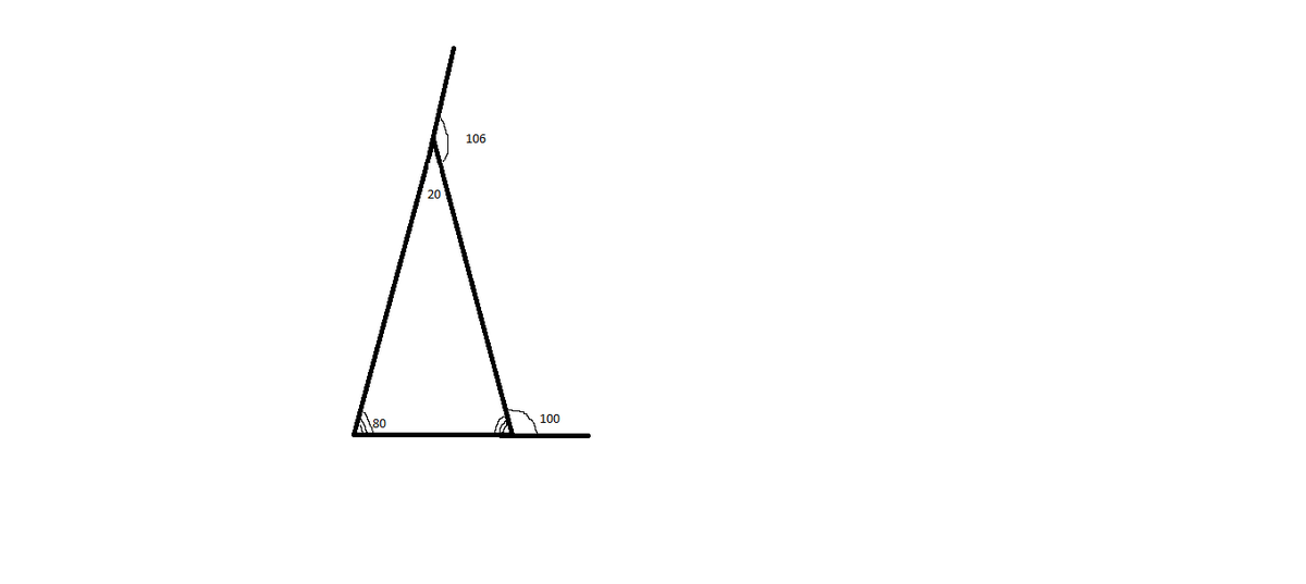 Внешний угол при вершине равнобедренного треугольника противолежащей основанию,равен 106 градусов.Найдите внешний угол при основании
