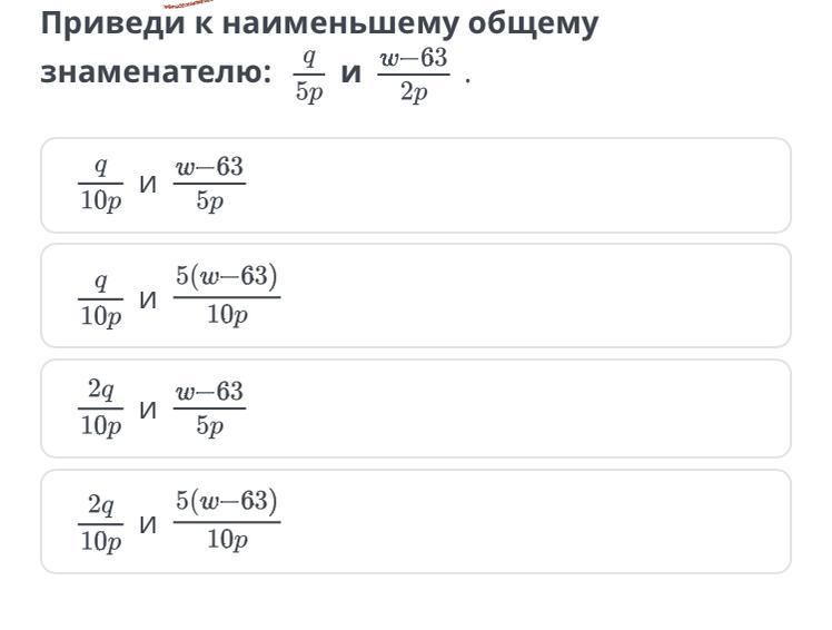 Ответ :2q/10p и 5(w-63)/10p