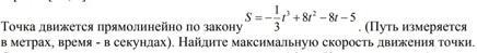 Дана функция пути от времени: S = (-1/3)t^3 + 8t^2 - 8t - 5.