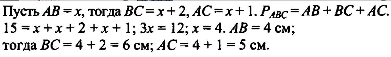 Периметр треугольника ABC равен 15 см. Сторона ВС боль-