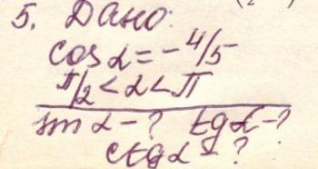 находиться во второй четверти ( синус положительный, косинус отрицательный, тангенс отрицательный, котангенс отрицательный).