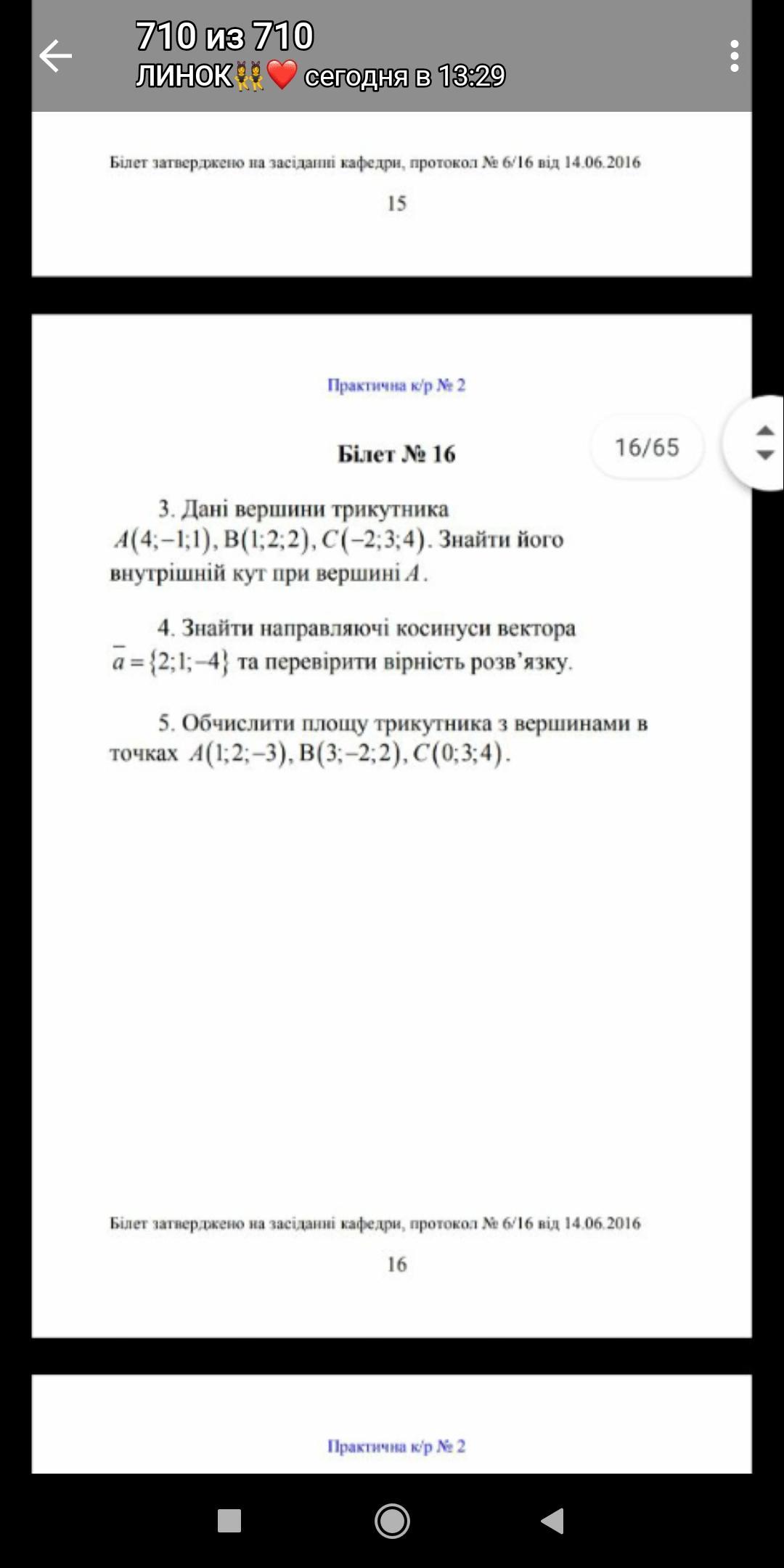 Находим площадь треугольника ABC как половину модуля векторного произведения векторов AB и AC.