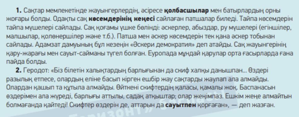 1.Сақ мемлекетінде кімдердің орны жоғары болды?