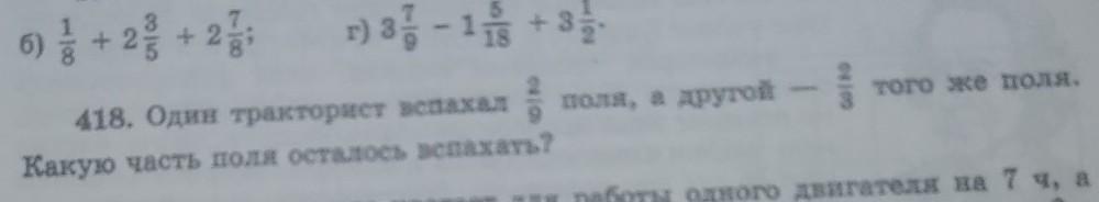 Обозначим все поле за 1. Тогда: 1-2/3-2/9=1/9