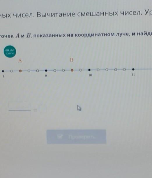 Определи координаты точек А и В, показанных на координатном луче, и найди их сумму.