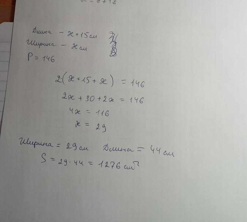Периметр квадрата равен 146 см. Найдите площадь прямоугольника с