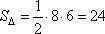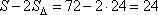 Из этой площади вычтем две площади равных прямоугольных треугольников, со значениями площадей