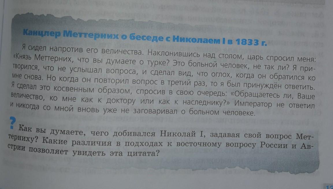 Николай 1 увидел, что князь не хочет открыто выражать свою позицию по поводу Османской империи, их врага. Австрия не хотела открыто воевать с Османской империей, России же при Николае 1 была готова воевать, так как Николай считал, что Османская империя в упадке "Больной человек Европы", который уже умирает и необходимо подтолкнуть эту страну к падению.
