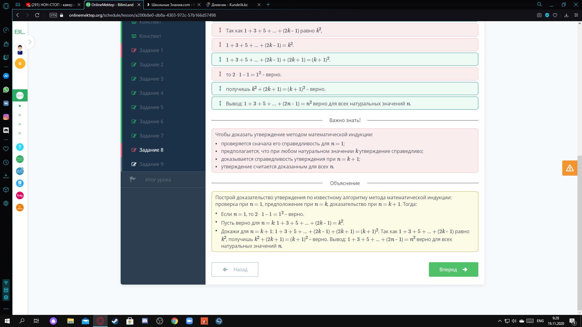 получишь k2 + (2k + 1) = (k + 1)2 – верно.