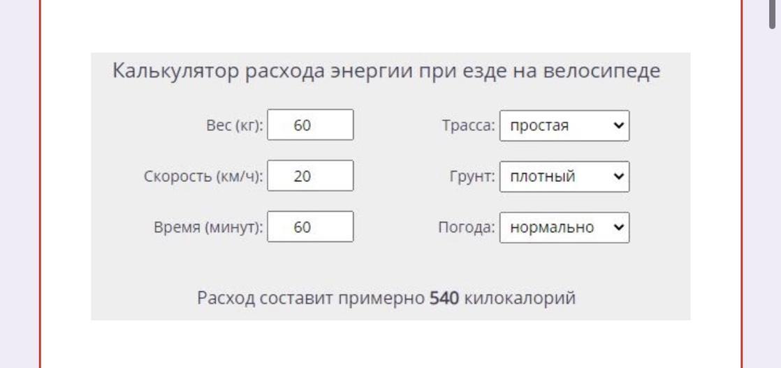 Регулярная езда на велосипеде может стать полноценным помощником в сжигании лишнего веса. А онлай-калькуляторы помогает сделать тренировку более оптимальной (полезной). Определите сколько надо потратить секунд,чтобы расход составил 540 килокалорий?