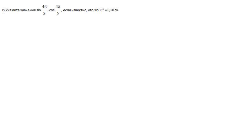 π/5 = 36° ⇒ sin 4π/5 = 0.587