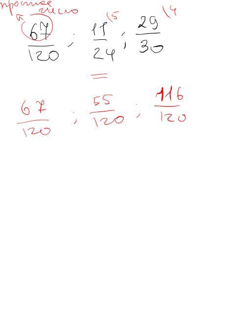67 - простое число, следовательно, берем его знаменатель за наименьший общий