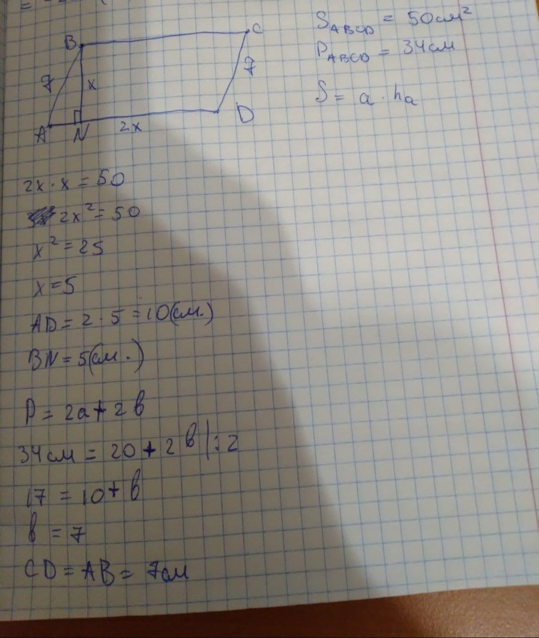 a является нашей высотой, сторона, к которой провели высоту: 2*5=10.
