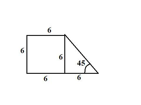 Данная прямоугольная трапеция состоит из квадрата со стороной 6 см и его половины. Площадь этой трапеции равна сумме площадей квадрата со стороной 6 см и равнобедренного прямоугольного треугольника с катетами 6 см.