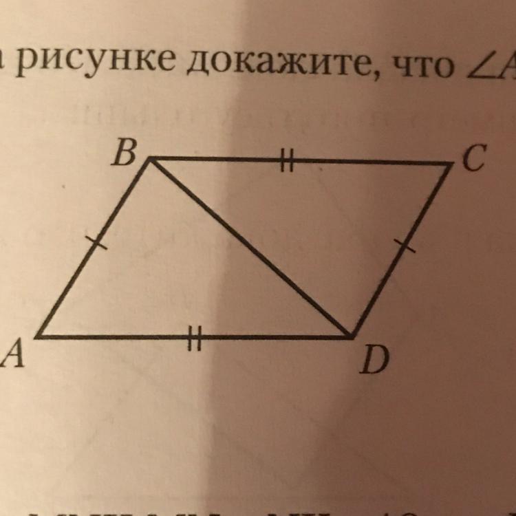 1. Рассмотрим два треугольника ABD и BCD a они равны по третьему признаку равенства, так как BC по условию равен AD, и CD = AB, сторона BD - общая у обоих треугольников, следовательно они равны по трём сторонам, а так как они равны, их углы тоже равны, значит угол А = углу С.