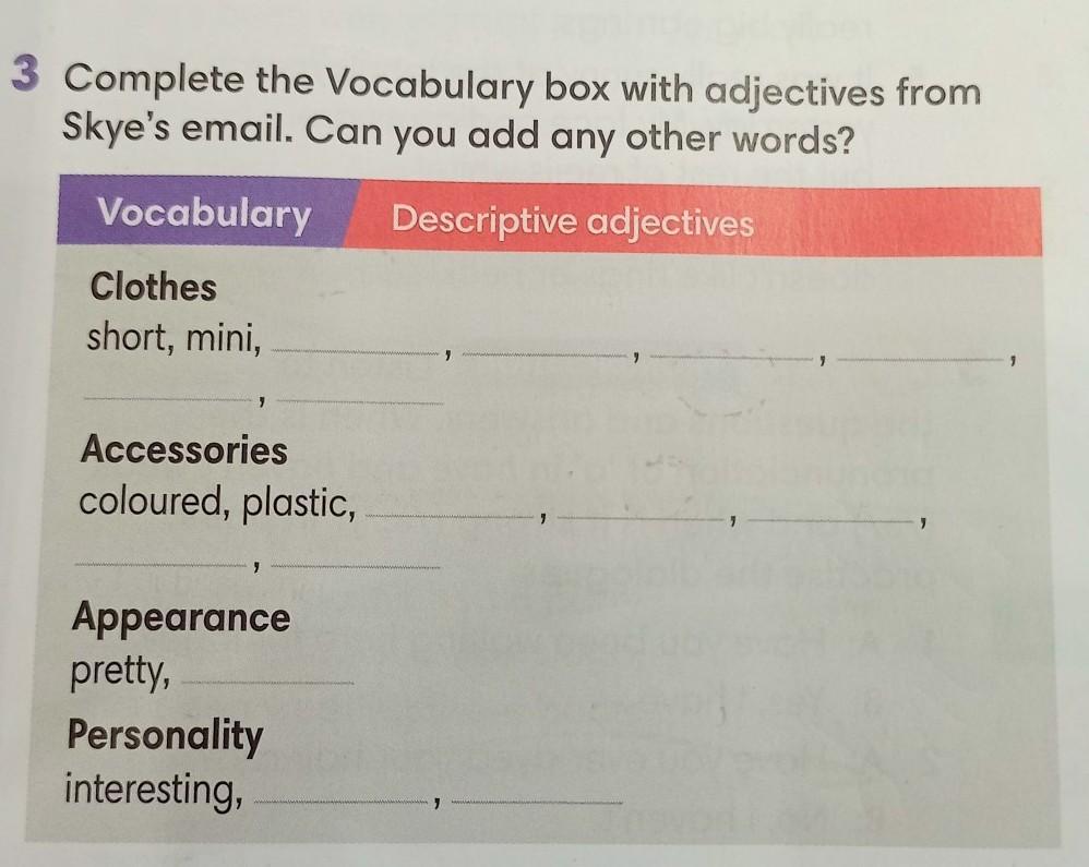 Clothes : skirt, socks, t-shirt, jacket, shoes, dress