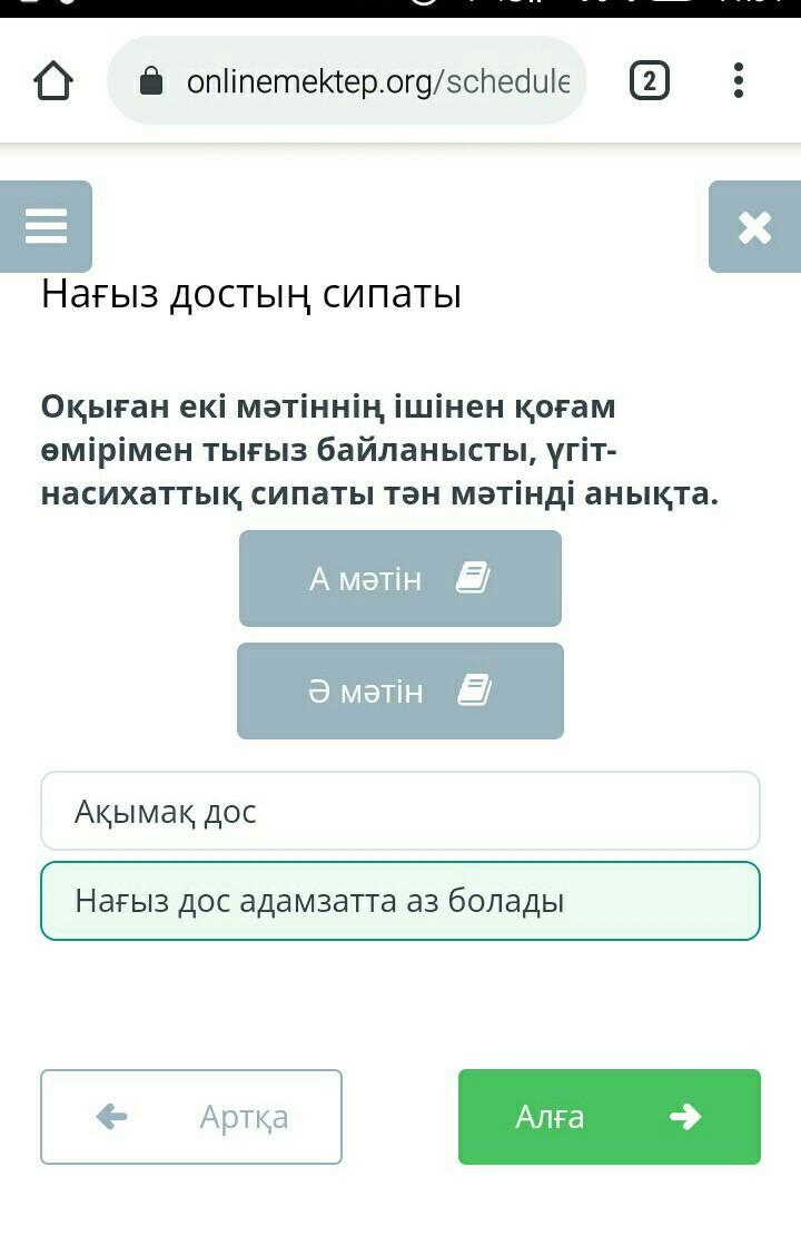 Оқыған екі мәтіннің ішінен қоғам өмірімен