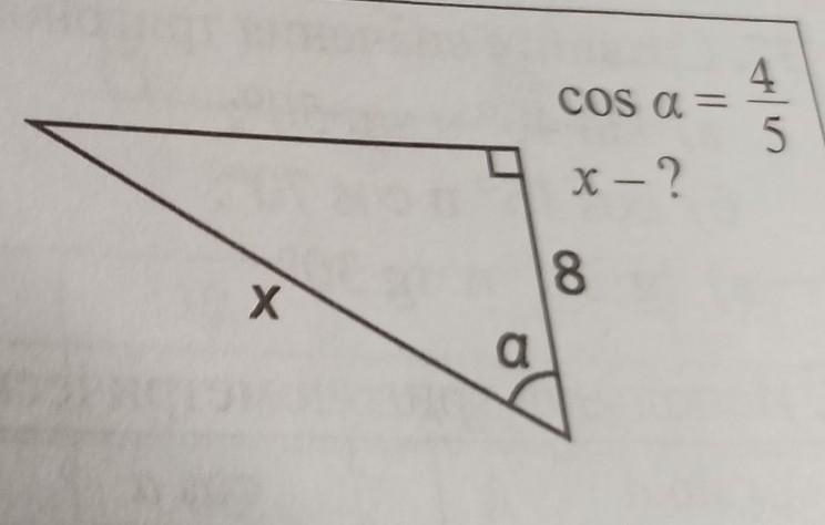 соs -- отношение прилежащего катета к гипотенузе (в нашем случае 8 к x)