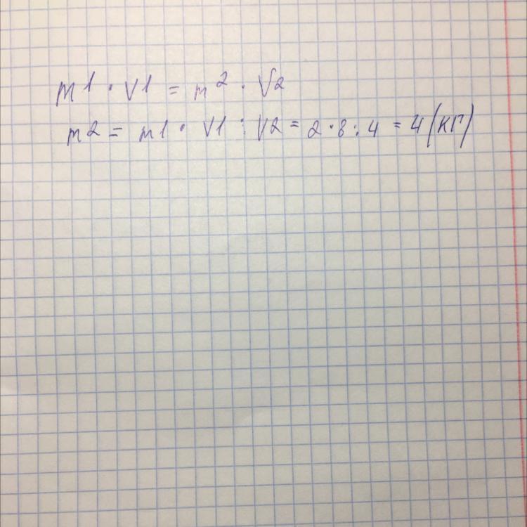 M2=M1*V1:V2=2*8:4=4 кг