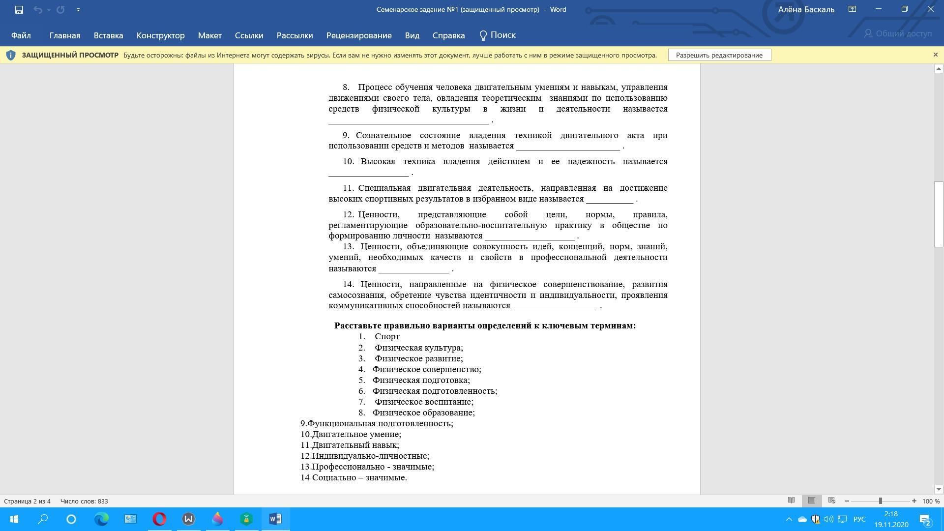 1. Часть общей культуры человечества, совокупность материальных и духовных ценностей общества в области физического совершенствования человека называется _____________________________________ .
