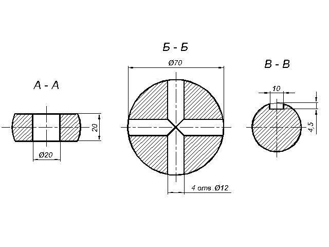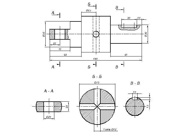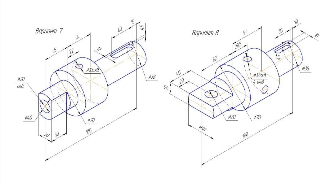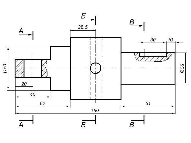 На главном виде выполнила местные разрезы, т.к. размеры нельзя указывать по невидимым (штриховым) линиям.