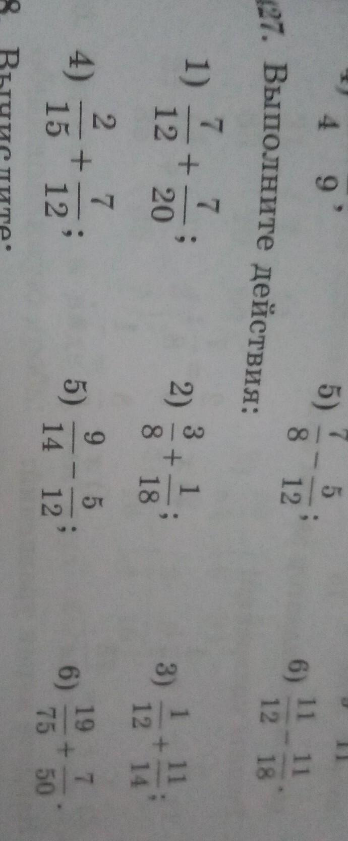 1. 14/32 2. 4/26 3. 12/26 4. 9/27 5. 14/26 6. 26/125