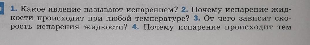 2. Потому что молекулы в жидкости движутся с разными скоростями, и наиболее "быстрые" молекулы покидают жидкость совсем ( это и есть испарение) , но чем выше температура, тем быстрее движутся молекулы и быстрее идёт испарение.