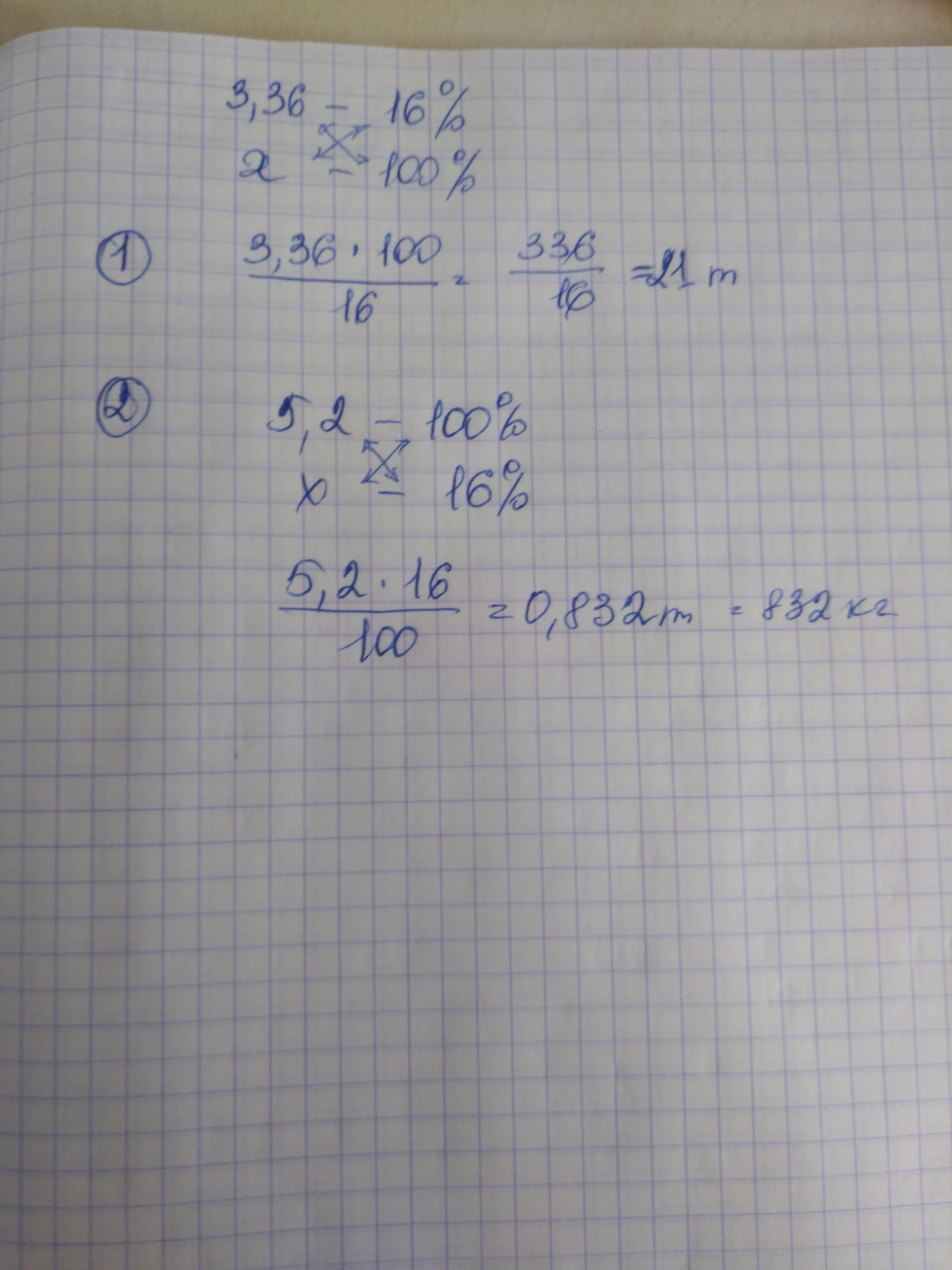 масса сушеных яблок составляет 16% массы свежих яблок. сколько надо взять свежих яблок, что бы получить 3,36т сушеных? сколькр сушеных яблок получится из 5,2т свежих яблок?