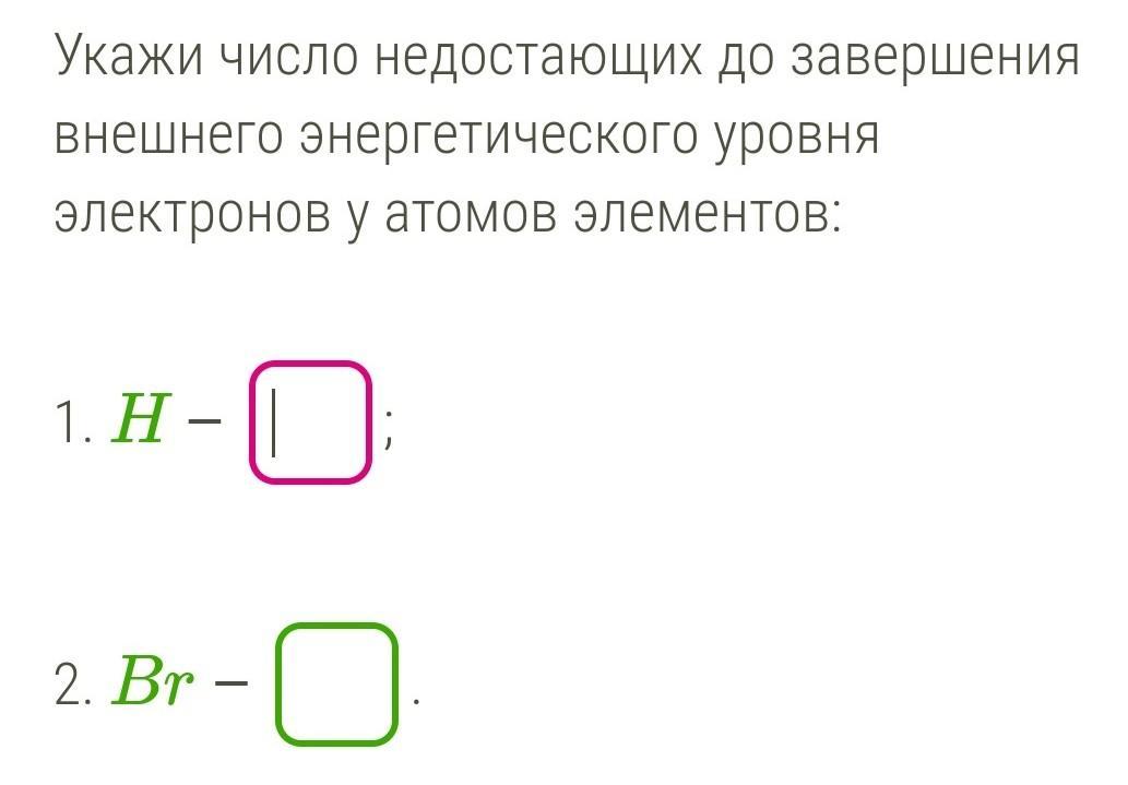 Укажи число недостающих до завершения внешнего энергетического уровня электронов у атомов элементов: