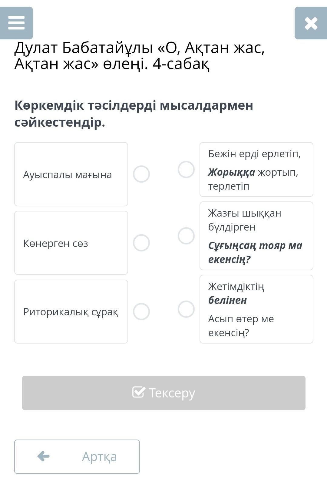Көркемдік тәсілдерді мысалдармен сәйкестендір