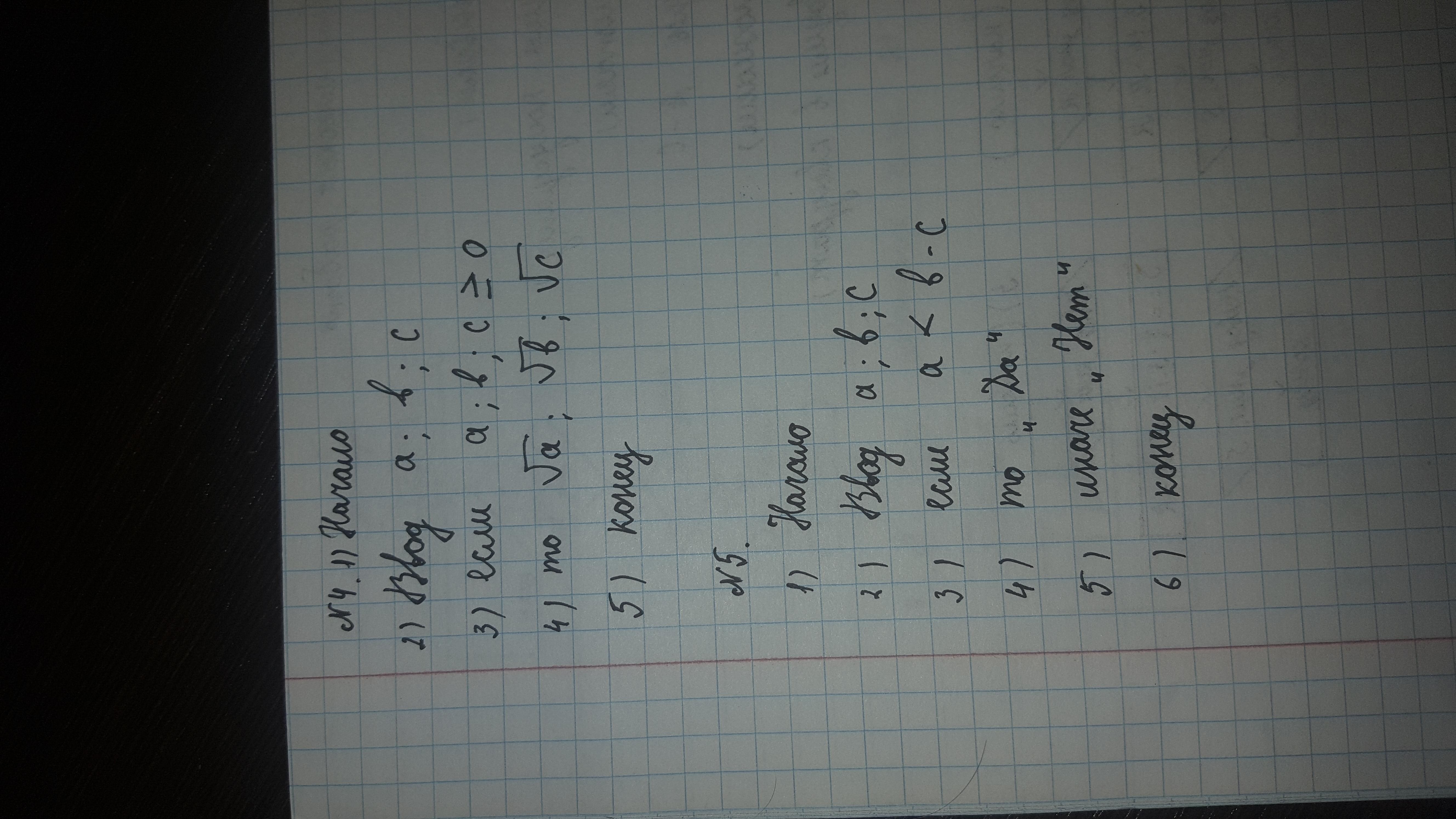 1.Составьте алгоритм,который вычисляет квадратный корень неотрицательных чисел среди заданных чисел a,b,c