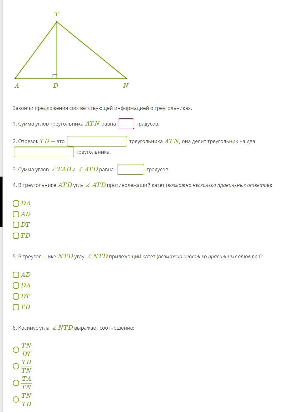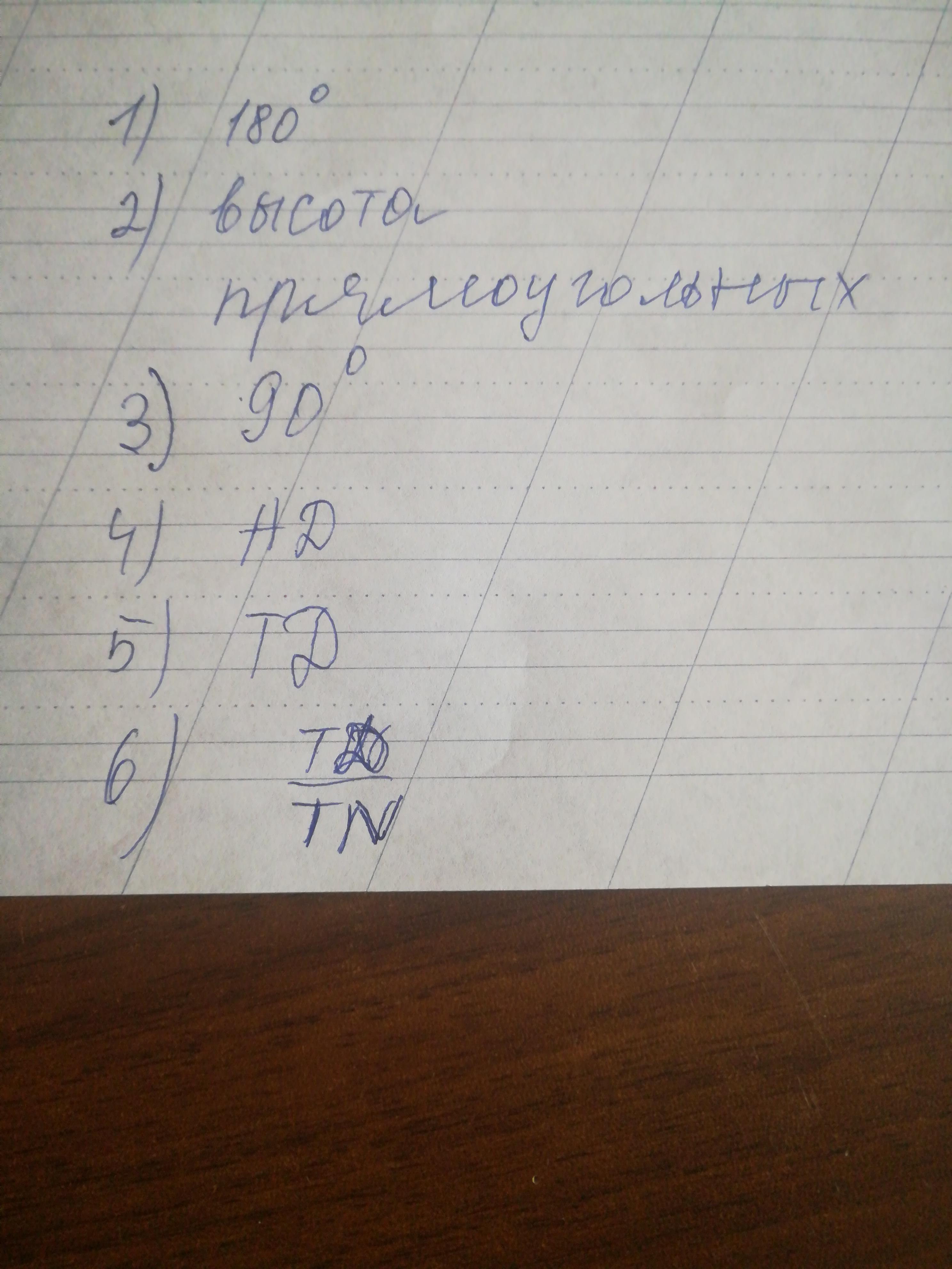 Ответ:1) 180, 2) высота, прямоугольных, 3) 90, 4) АД, 5)ТД, 6) ТД/ ТN