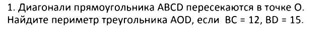 Периметр Р(AOD)=AO+OD+AD=7,5+7,5+12=15+12=27.