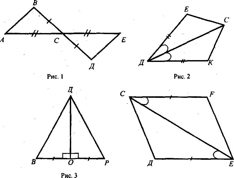 Все пары треугольников равны по двум сторонам и углу между ними.