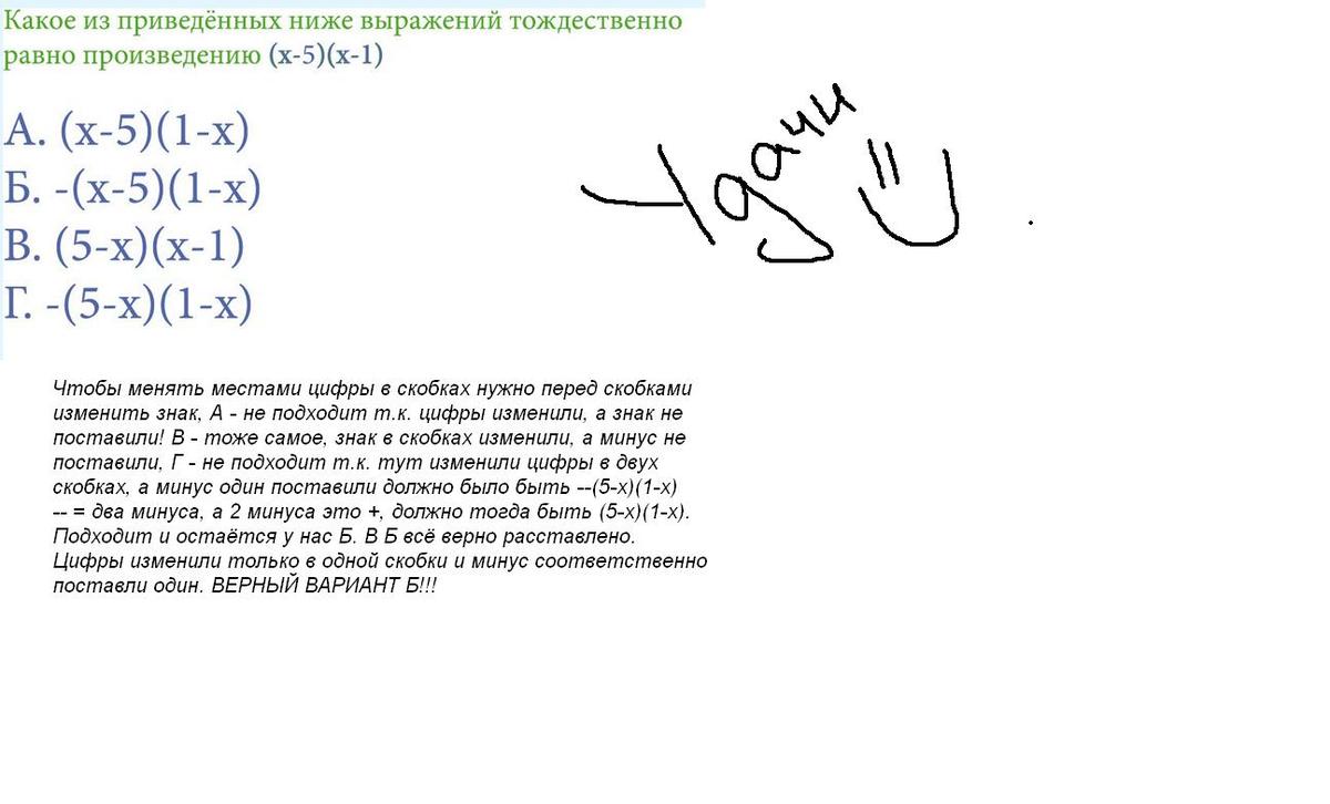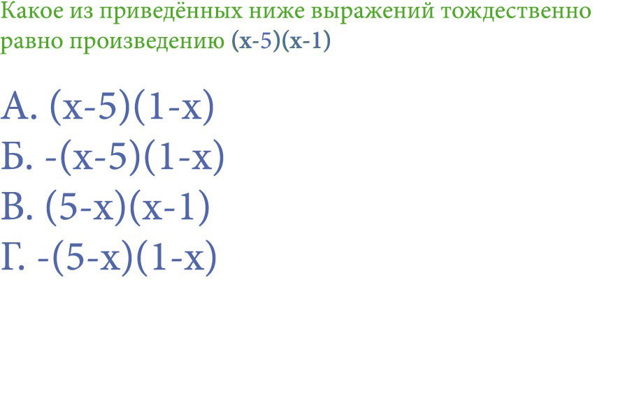 Исх. приводится к (x2 - 6x + 5) в первом будет ( -x^2 + 6x - 5) а во втором тоже самое, только с минусом, а потому это будет равно исх! Если я ошибся, сорри, просто голова не очень варит!