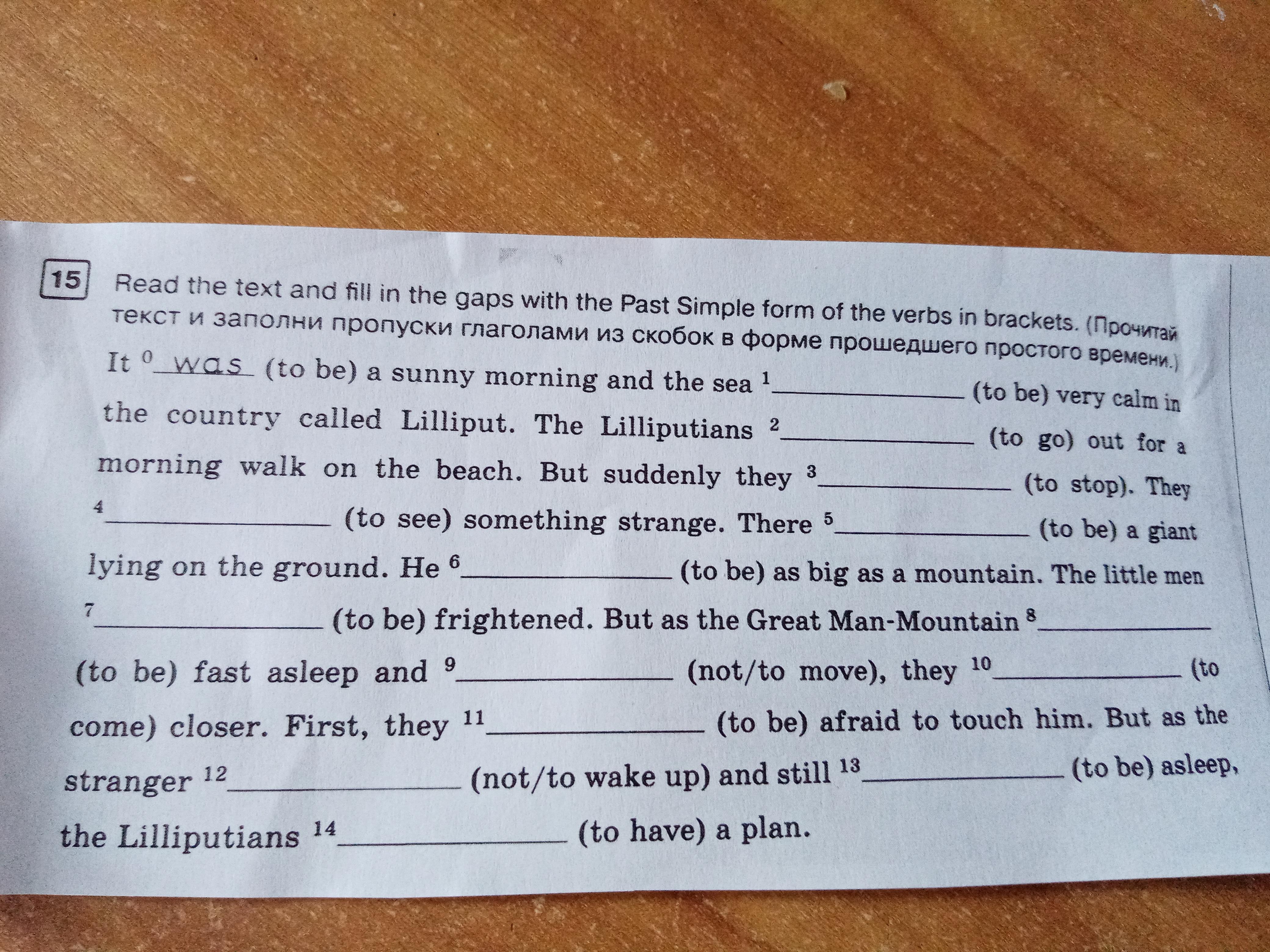 1 was2 went 3 stoped 4 saw 5 was 6 was 7 were 8 was 9 did not move 10 came 11 were 12 did not wake up 13 was 14 had