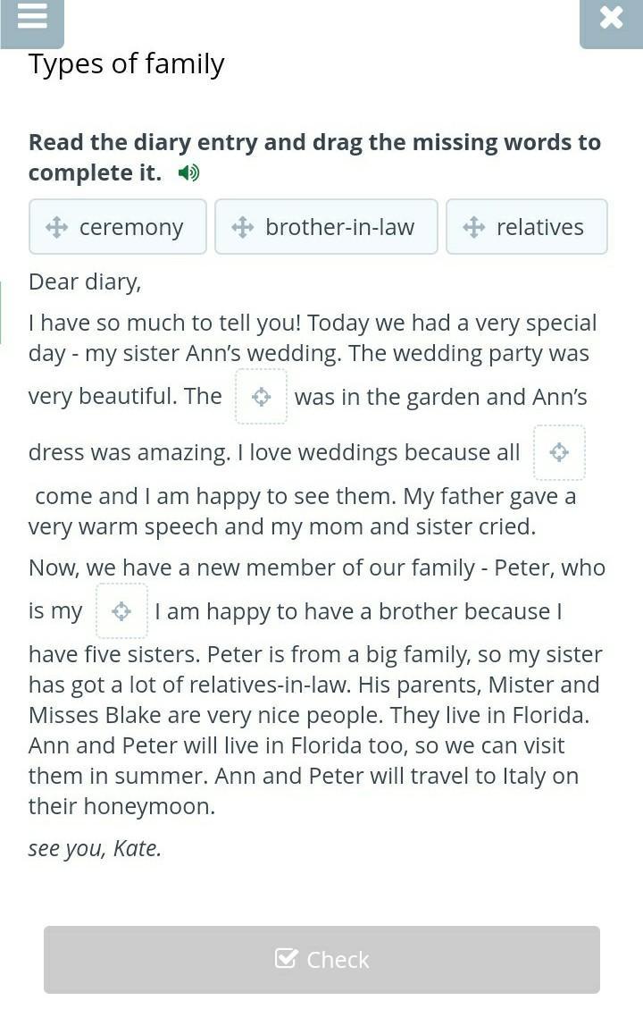 Ответ:1ceremony 2 relatives 3brother-in-law