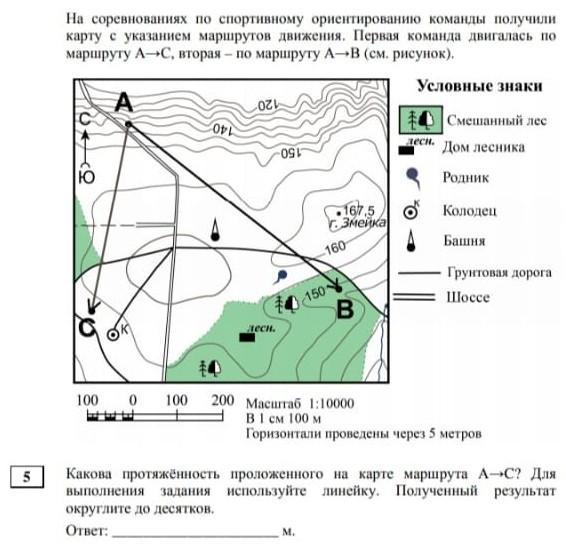 Какова протяжённость продолжительного на карте маршрут А-С? Полученный результат округлите до десятков.