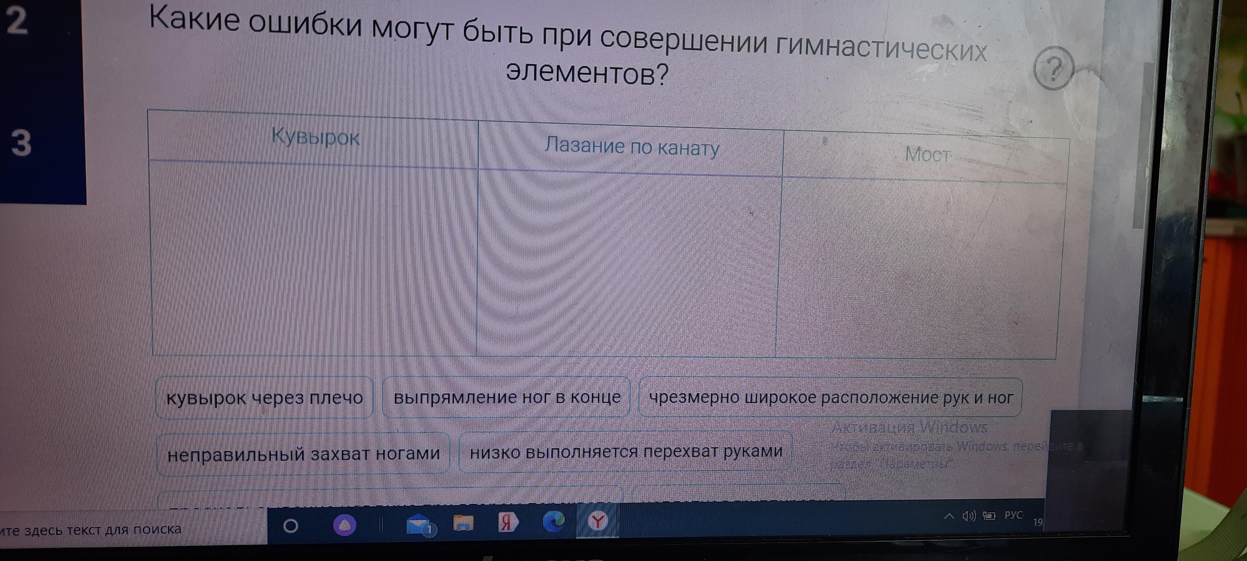 канат: неправильный захват ногами, низкий перехват руками, проскальзывание ног вниз, недостаточно высокое подтягивание