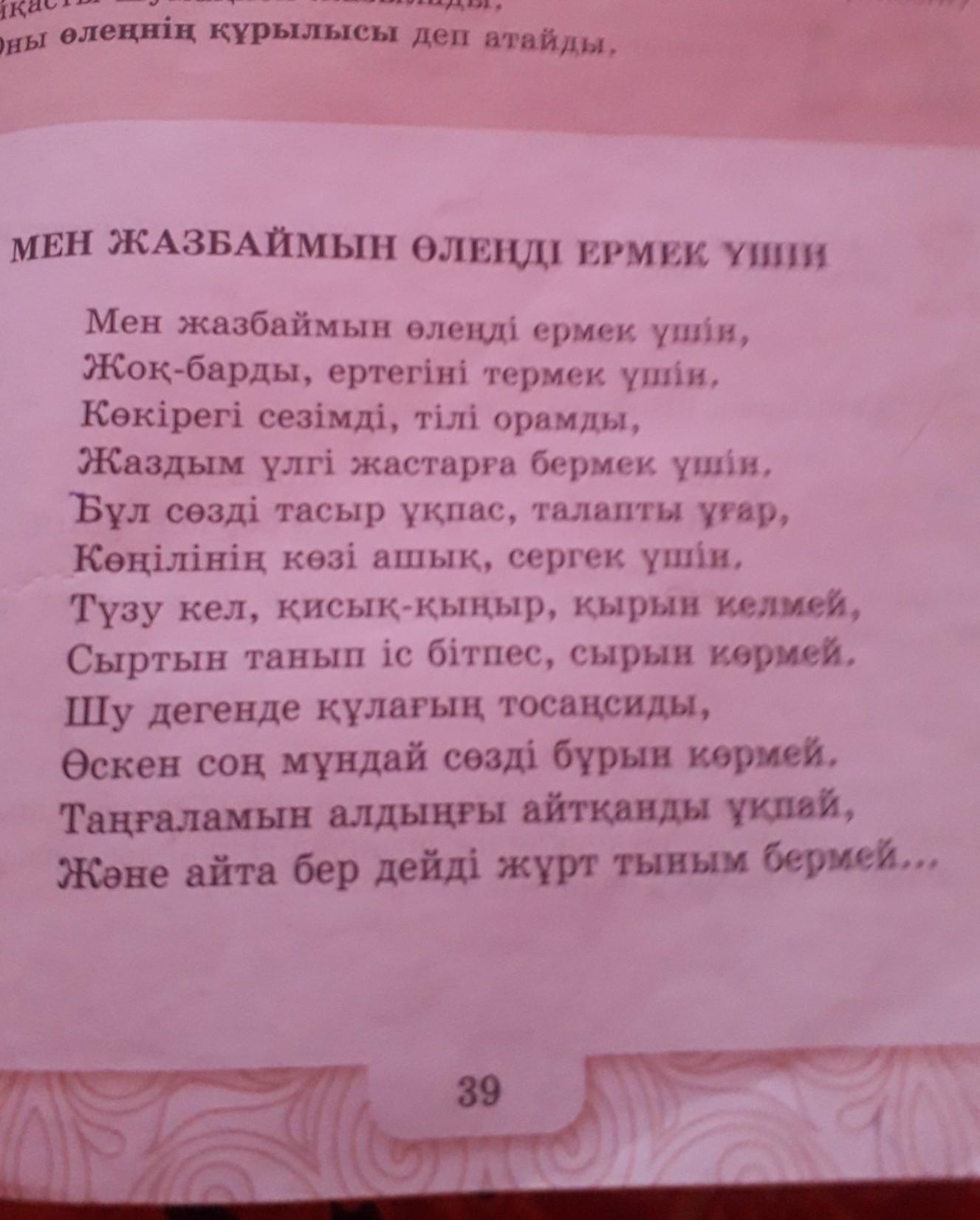 《мен жазбаймын өлеңді ермек үшін》 өлеңінің көріктеу құралдарын табыңдар. Құрылысына қарай талдаңдар.