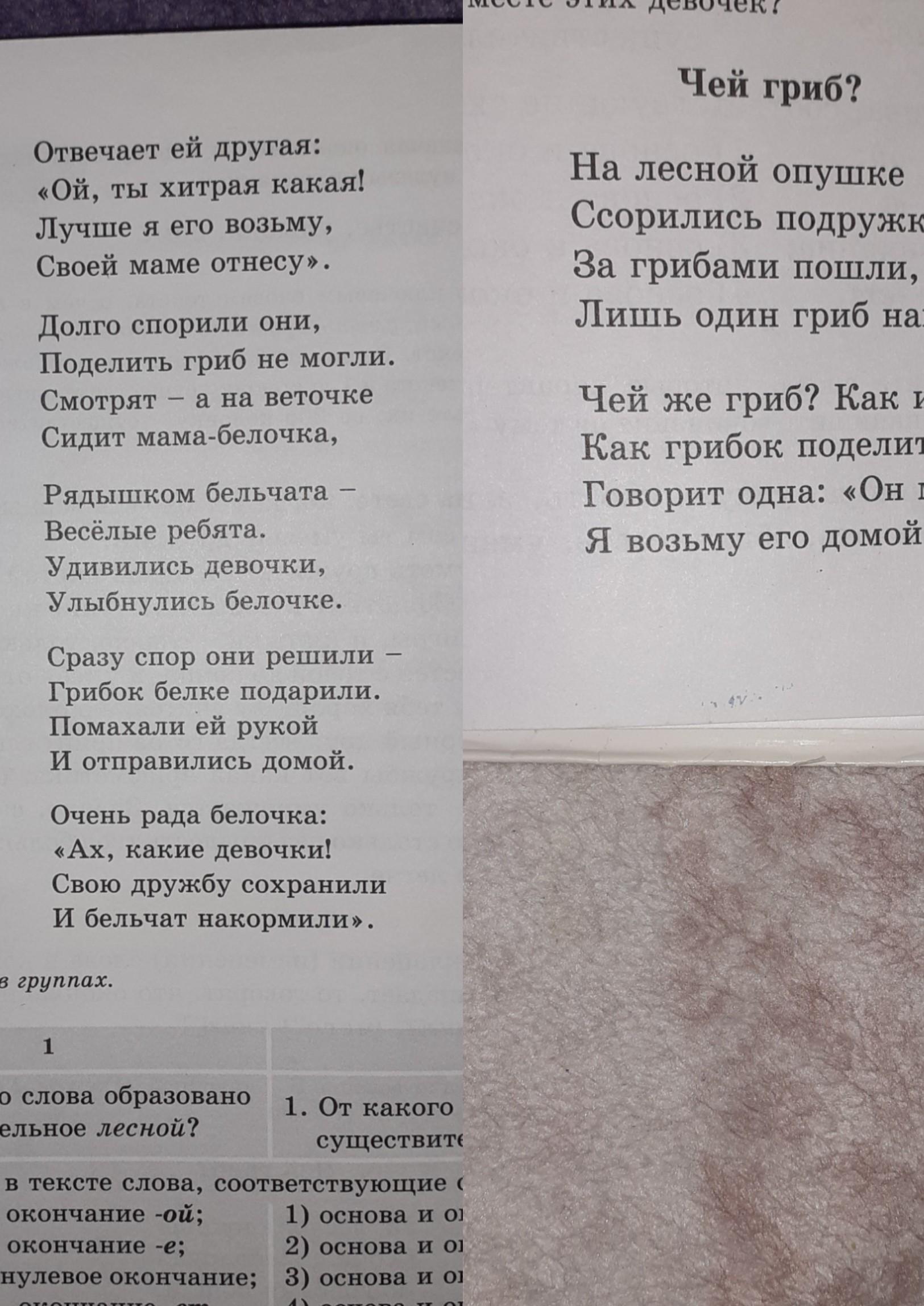 Затем прочитайте упр. 202 стихотворение Чей гриб? Найдите в тексте слова, соответствующие схемам:1.основа и окончание - ой2)основа и окончание - е3)основа и нулевое окончание4)основа и окончание - ет