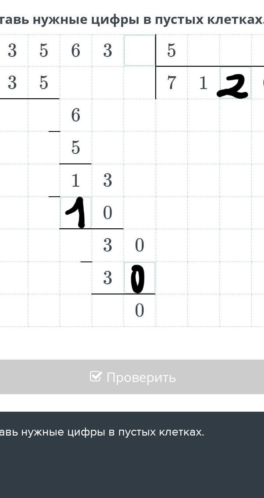 Вставь нужные цифры в пустых клетках.