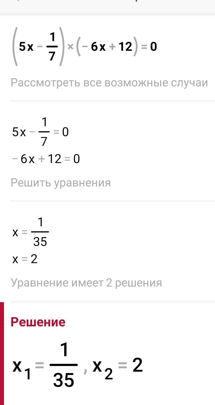 (5х-⅐)(-6х+12)=0