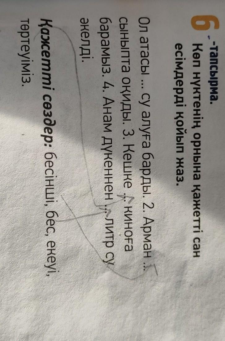 Бір "екеуі" 2)" бесінші "3)"төртеуіміз"4)"бес"