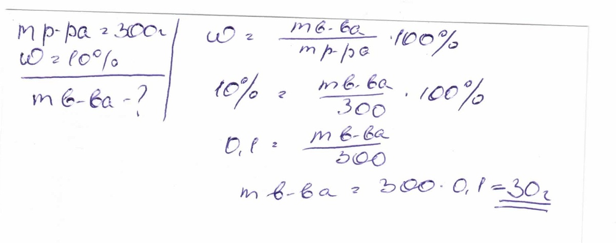 сколько граммов хлорида натрия потребуется для приготовления раствора массой 300 грамм с массовой долей хлорида натрия 10%.